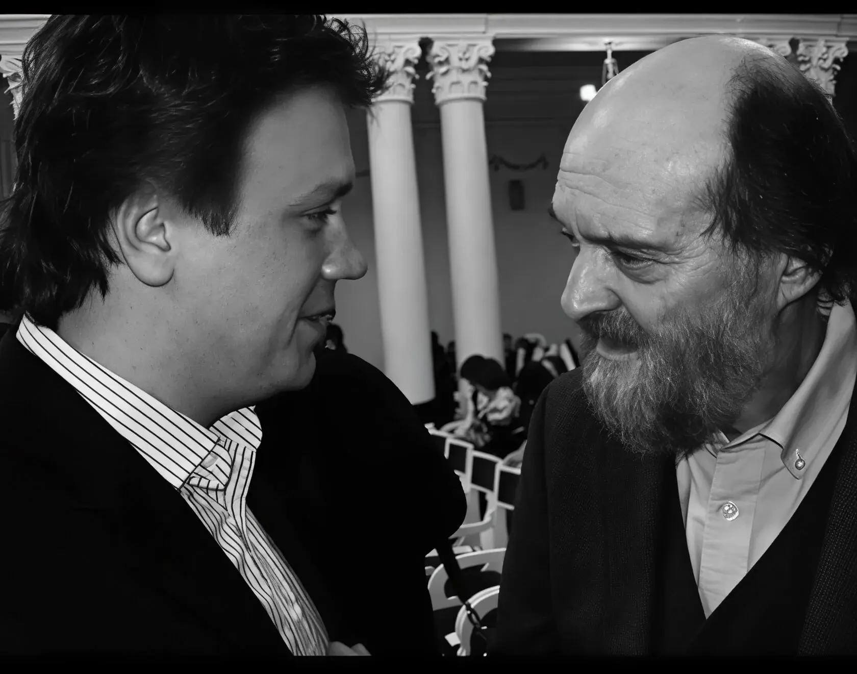 Мне особенно тепло отзываются эти слова, ведь пятнадцать лет назад мне выпала честь не только прикоснуться к его музыке, но и лично познакомиться с этим удивительным человеком. Как вы точно заметили, он «чудесный человек». В этой случайной, но такой меткой оговорке — «компот истор» вместо «композитор» — кроется невероятная теплота и многогранность его личности, словно в его душе смешалось множество историй, звуков и человеческих судеб.